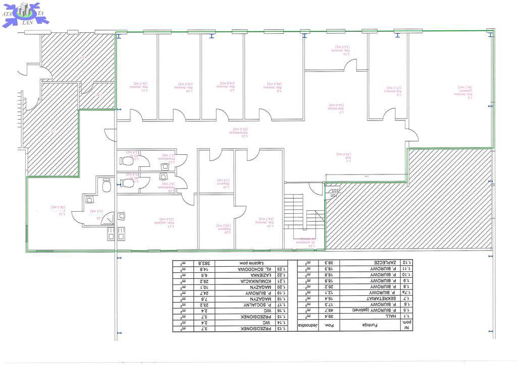Pomieszczenia biurowe położone w czołowej części hali na pierwszym piętrze