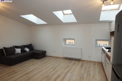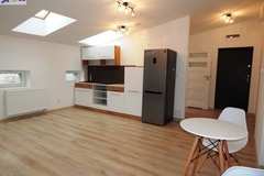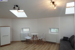 Doświetlenie oknami połaciowymi (w łazience również) daje niesamowity klimat w mieszkaniu. Nieuciążliwe skosy - minimalna wysokość 205 cm.
