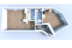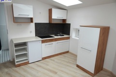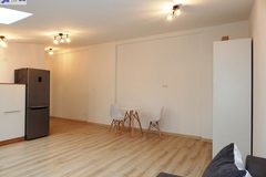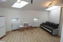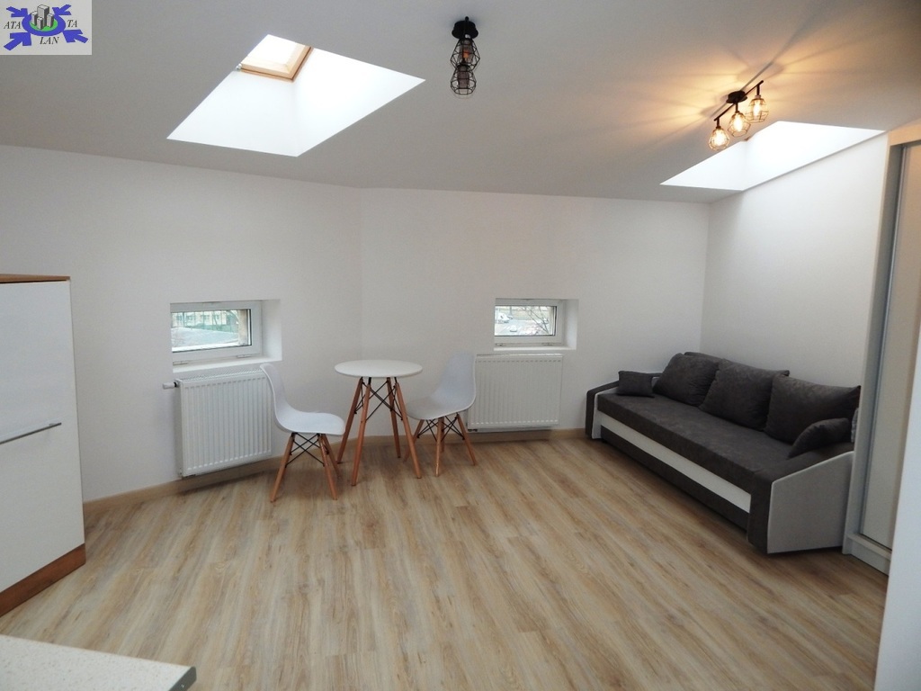 Powierzchnia ok. 26 m2 to salon z aneksem kuchennym (ok. 21 m2) z kanapą z funkcją spania, stolikiem jadalnianym z dwoma krzesłami, dużą szafą. W aneksie meble i lodówka w zabudowie, płyta grzewcza elektryczna łazienka w gustownej, nowoczesnej glazurze i terakocie (5 m2) z kabiną prysznicową, WC pralka na wyposażeniu.