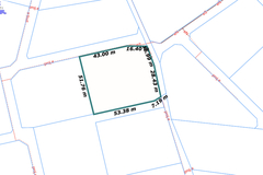 Kształt działki zbliżony do prostokąta, wymiary ok. 57m x 50m.