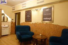 Lokal w dobrym stanie, składający się z trzech osobnych gabinetów o pow. ok 13 m2, 24 m2 oraz 12,5 m2, wyodrębnionej w obszernym holu recepcji, pomieszczenia socjalnego ok 6 m2, dużej łazienki z wc oraz osobnego wc.