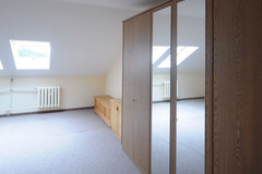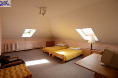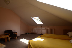 Obszerne powierzchniowo pokoje i kuchnia oświetlone są szczelnymi oknami połaciowymi typu "Fakro".