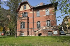 Spektakularna bryła budynku wyróżnia się na tle nowoczesnych apartamentowców i została wyremontowana pod nadzorem konserwatora zabytków .