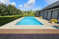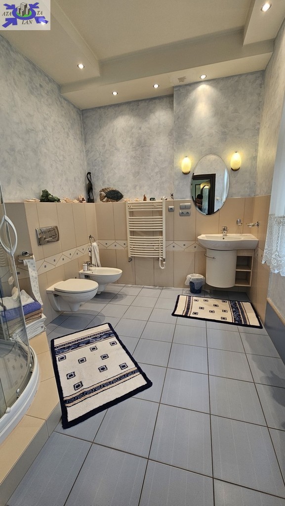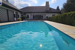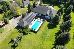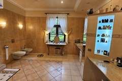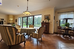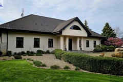 Do sprzedania nietuzinkowa rezydencja położona na dwu hektarowej działce otoczonej otuliną prywatnego lasu. Nieruchomość wybudowana w formie dworku z prywatnym basenem jeziorkiem oraz domkiem dla gości. Całość domu wybudowana w 2001 roku z bloczków firmy Fortis pokryta dachówką cementową. Okna PCV z szybami antywłamaniowymi w kolorze palisander. CO i CW własne gazowe + wspomaganie poprzez baterie solarne. Zamontowana instalacja fotowoltaiczna o mocy 9,5 kWh co w całości pokrywa zapotrzebowanie w energie elektryczną całego domu. Na 716 m powierzchni całkowitej składają się hol, WC, trzy sypialnie, kuchnia, jadalnia, spiżarnia, trzy łazienki razem z WC, pomieszczenia gospodarcze, pralnia, pokój relaksu z sauną, garaż trzy stanowiskowy z kanałem. 113- metrowy salon z wyjściem poprzez system panoramicznego okna przesuwnego typu HS na duży taras i zejście do basenu. Kominek w salonie + kominek z grillem za tarasie ogrodowym. Basen o wymiarach 12x5, woda z własnego ujęcia ze studni ogrzewana poprzez maty solarne oraz pompę ciepła. Całość poddasza użytkowego wielkości 288 m2 do dodatkowego zagospodarowania. Obok domu znajduje się 70 m2 całoroczny domek dla gości (salon +sypialnia + kuchnia +łazienka). Część ogrodowa wyposażona w system automatycznego podlewania z własnej studni głębinowej. Całość posesji zagospodarowana 30-sto letnim drzewostanem z wkomponowanym zarybionym stawem. Dwa lata temu została wymieniona na zupełnie nową oczyszczalnia biologiczna dla całej posesji. Rezydencja dla osób cenionych prywatność spokój i komfort. Zapraszamy na prezentację opisywanej rezydencji. Chcesz się poczuć luksusowo to zapraszam do osobistej weryfikacji i kontaktu z maklerem prowadzącym.