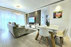 Oferujemy do sprzedania przestronny i słoneczny apartament z tarasem oraz dużym ogrodem (133 m2), znajdujący się na parterze niskiego budynku z 2016 roku, usytuowany na nowoczesnym osiedlu w atrakcyjnym zakątku Warzymic. Na powierzchnię 69,31 m2 składa się słoneczny salon z aneksem kuchennym, wyjściem na taras i ogród, dwie sypialnie, łazienka z WC oraz korytarz. Atutem nieruchomości - sporych rozmiarów ogródek (o powierzchni 133m2) z zaaranżowanym - dużym, drewnianym tarasem. Dodatkowo, na ogródku basen oraz piaskownica dla dzieci. Poczucie intymności zapewniają wysokie nasadzenia (ponad 2 m tuje) z zainstalowanym automatycznym systemem nawadniania (woda ogrodowa, sterowane aplikacją). Standard mieszkania - bardzo wysoki. Lokal wykończono i wyposażono materiałami oraz sprzętem klasy premium. W całym apartamencie zainstalowano wodne ogrzewanie podłogowe z elektronicznymi termostatami w każdym pomieszczeniu, sterowane zarówno ręcznie jak i przez aplikację. W oknach elektrycznie sterowane rolety zewnętrzne. Dodatkowym atutem, wysokowydajna klimatyzacja firmy mitsubishi heavy industries (chłodząco/grzewcza w klasie A++). Kuchnia wyposażona w bardzo wydajny wyciąg (1200m3 na godzinę). Apartament posiada także i garderobę. W cenie nieruchomości - całość umeblowania, w tym w zabudowie oraz sprzęty RTV/AGD widoczne na zdjęciach. Osiedle na którego terenie znajduje się nieruchomość, bardzo zadbana, ogrodzona, z ogólnodostępnym parkingiem, dużą ilością zieleni, alejkami spacerowymi, wydzielonymi i ogrodzonymi strefami zabaw dla dzieci. W pobliżu m.in. markety, sklepy, szkoła, przedszkole. W odległości około 5 kilometrów granica polsko - niemiecka (Kołbaskowo i Rosówek) oraz autostrada A6.