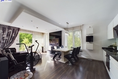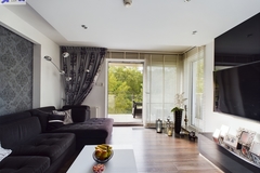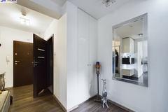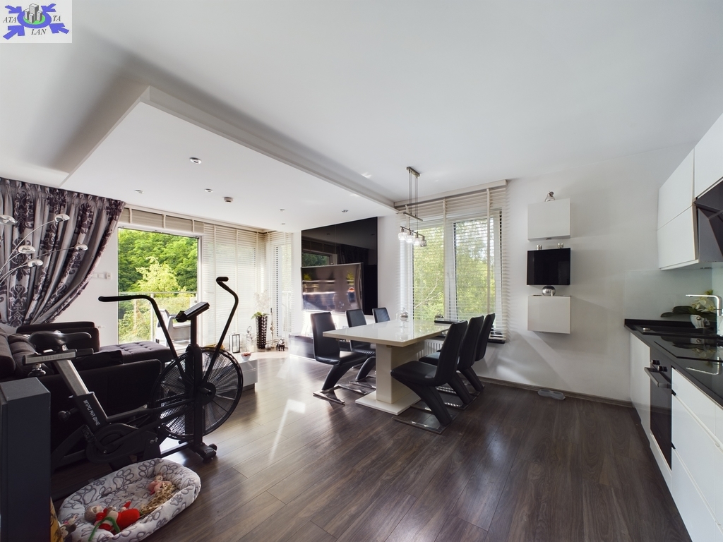 - Jasny przestronny salon z aneksem kuchennym, z którego przedostać możemy się również na balkon,