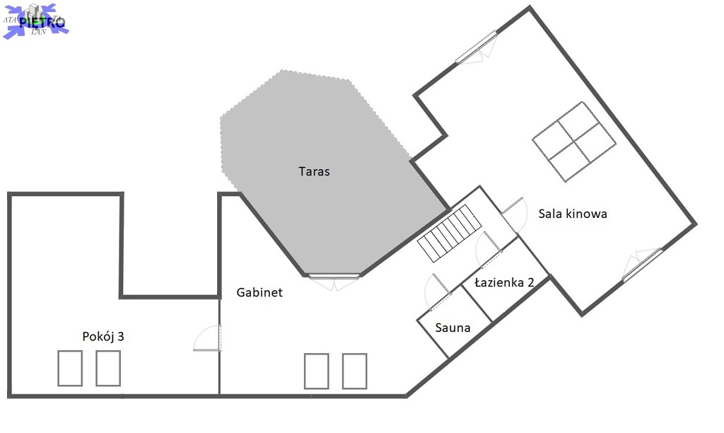 - przestrzeń otwarta biurowa z wyjściem na taras