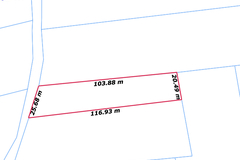 Nieruchomość kształtem zbliżona do prostokąta, o wymiarach podanych na zdjęciu w ofercie. (WYMIARY SĄ ORIENTACYJNE)