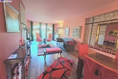 -Po lewej stronie wejście do przestronnego salonu z aneksem kuchennym ok. 50 m2, okna z dwóch stron na zimozielony ogród . W salonie i aneksie ciekawe wykończenie ścian kamieniem, które ładnie są wkomponowane w całość wystroju wnętrza.