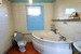 Łazienka z dużą narożna wanną, WC i umywalką, przygotowana do położenia glazury.