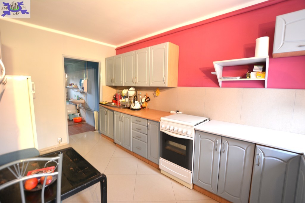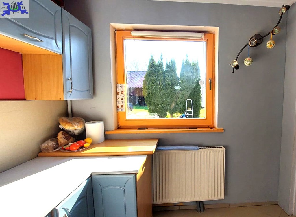 Duża jasna kuchnia z oknem, wyposażona w meble i sprzęt AGD w cenie zakupu nieruchomości.