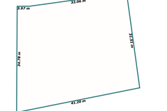 Kształt działki zbliżony do prostokąta, wymiary ok. 41m x 31m.