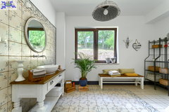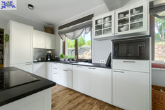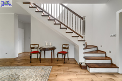 Dom wykończony jest wysokiej klasy materiałami, meblami na zamówienie i sprzętem AGD - praktycznie wszystko zostaje w cenie nieruchomości.