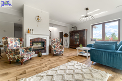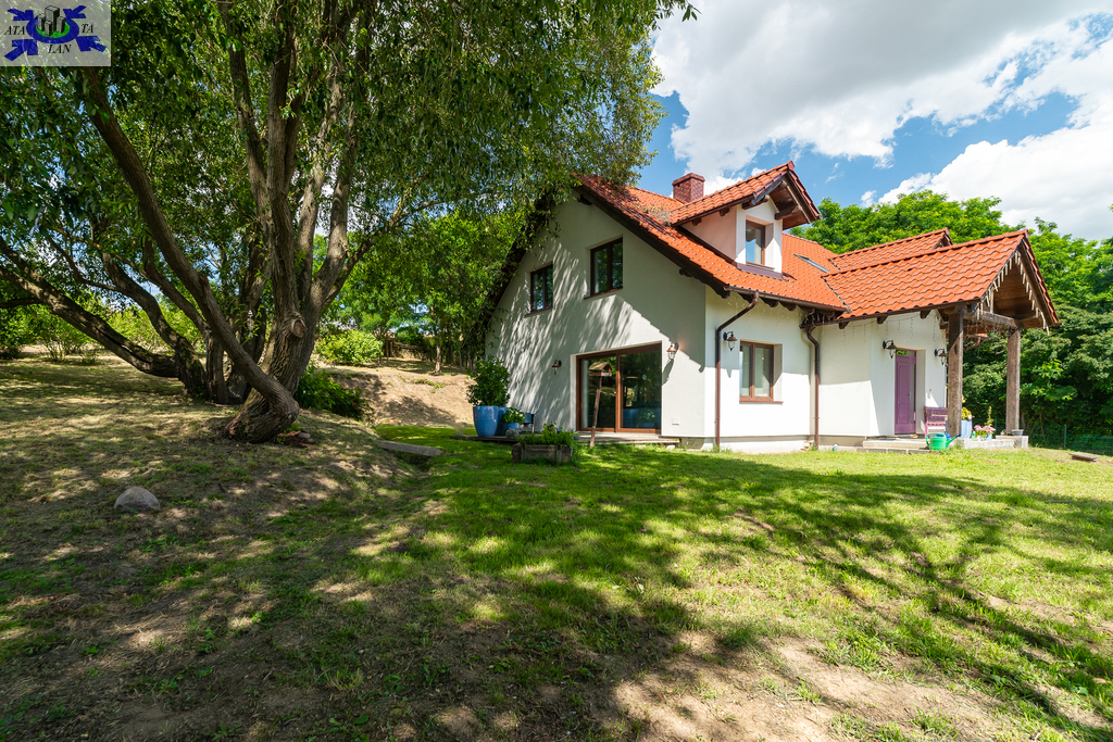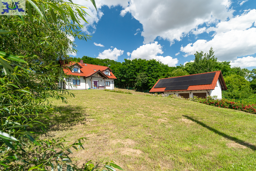Dom oddany do użytku w 2020 r, budowany z wysokiej jakości materiałów, energooszczędny, kryty dachówką ceramiczną, z trójszybowymi oknami drewnianymi wysokiej klasy, wyposażony w nowoczesną, wydajną głębinową pompę ciepła, system rekuperacji i instalację fotowoltaiczna o mocy 10 kW umieszczoną na dachu budynku gospodarczego/garażu.