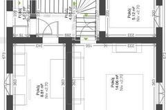 -> 5 pokoi (trzy na piętrze, 2 na drugim piętrze),