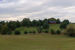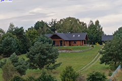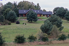 Dom położony na wzniesieniu z pięknym widokiem na lasy.