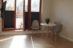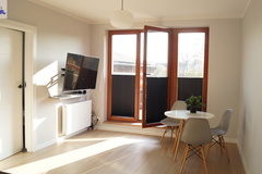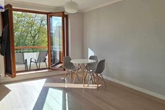 Mieszkanie charakteryzuje się jasnym i przestronnym salonem z dużymi oknami do podłogi, które zapewniają mnóstwo naturalnego światła i prowadzą na balkon. Z salonu rozpościera się widok na korony drzew, co gwarantuje prywatność i bliskość natury. Aneks kuchenny jest wyposażony w nowoczesne sprzęty, takie jak piekarnik, płyta grzewcza i lodówka. Przytulna sypialnia oferuje doskonałe doświetlenie i widok na zieleń, a nowoczesna łazienka z przestronną kabiną prysznicową jest wykończona w wysokim standardzie. Dodatkowo, mieszkanie dysponuje dwiema szafami typu komandor oraz wolnostojącą szafą z pralką, co zapewnia sporo miejsca do przechowywania. Słoneczny balkon z widokiem na zieleń to idealne miejsce na poranną kawę czy wieczorny relaks. Mieszkanie przeszło generalny remont i zostało urządzone z użyciem wysokiej jakości materiałów. Zamontowane rolety okienne termoizolacyjne pozwalają na stuprocentowe zaciemnienie, ograniczając nagrzewanie się pomieszczeń.