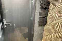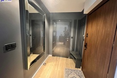 Elegancka łazienka z prysznicem, lustrem na całą ścianę i nową pralką, a także przedpokój z lustrem i wieszakami podkreślają wyjątkowość tego apartamentu.