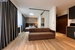 Eleganckie wnętrze zostało zaprojektowane z myślą o komforcie, a szklana ściana oddzielająca salon od części sypialnianej