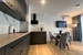 Aneks kuchenny wykonany pod wymiar wyposażony jest w nowoczesne sprzęty AGD, takie jak lodówka, zmywarka, okap i płyta kuchenna - wszystko nowe i objęte gwarancją.