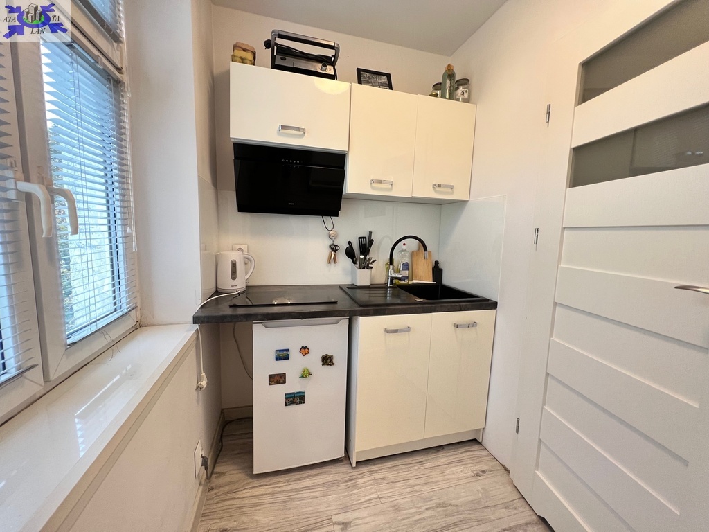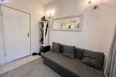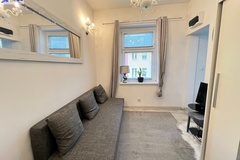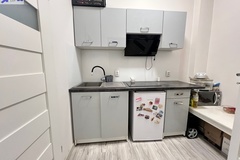 -Kawalerka o powierzchni około 18 m2, z aneksem kuchennym i łazienką, idealna na wynajem krótkoterminowy lub jako kompaktowa przestrzeń mieszkalna.