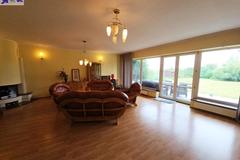 Salon z kominkiem - sam salon stanowi dużą, otwartą przestrzeń, pozwalającą na dowolną aranżację wnętrza. Salon doskonale doświetlony - okna od strony tarasu i ogrodu na prawie całą ścianę.