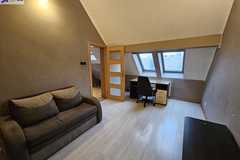 I poziom 72m2 duży pokój dzienny (można uzyskać z niego 2 pokoje) z balkonem, sypialnia, kuchnia z oknem, z przejściem do pomieszczenia gospodarczego, w którym znajduje się II obiegowy piec gazowy, łazienka, oddzielne wc i przedpokój. Kuchnia umeblowana. W łazience znalazło się miejsce zarówno na wannę jak i kabinę prysznicową. Istnieje możliwość powiększenia łazienki poprzez połączenie z toaletą i pomieszczeniem gospodarczym od strony kuchni.