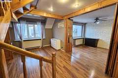 Na podłogach w pokojach panele oraz terakota w przedpokoju i kuchni. Okna pcv, na górze połaciowe drewniane.