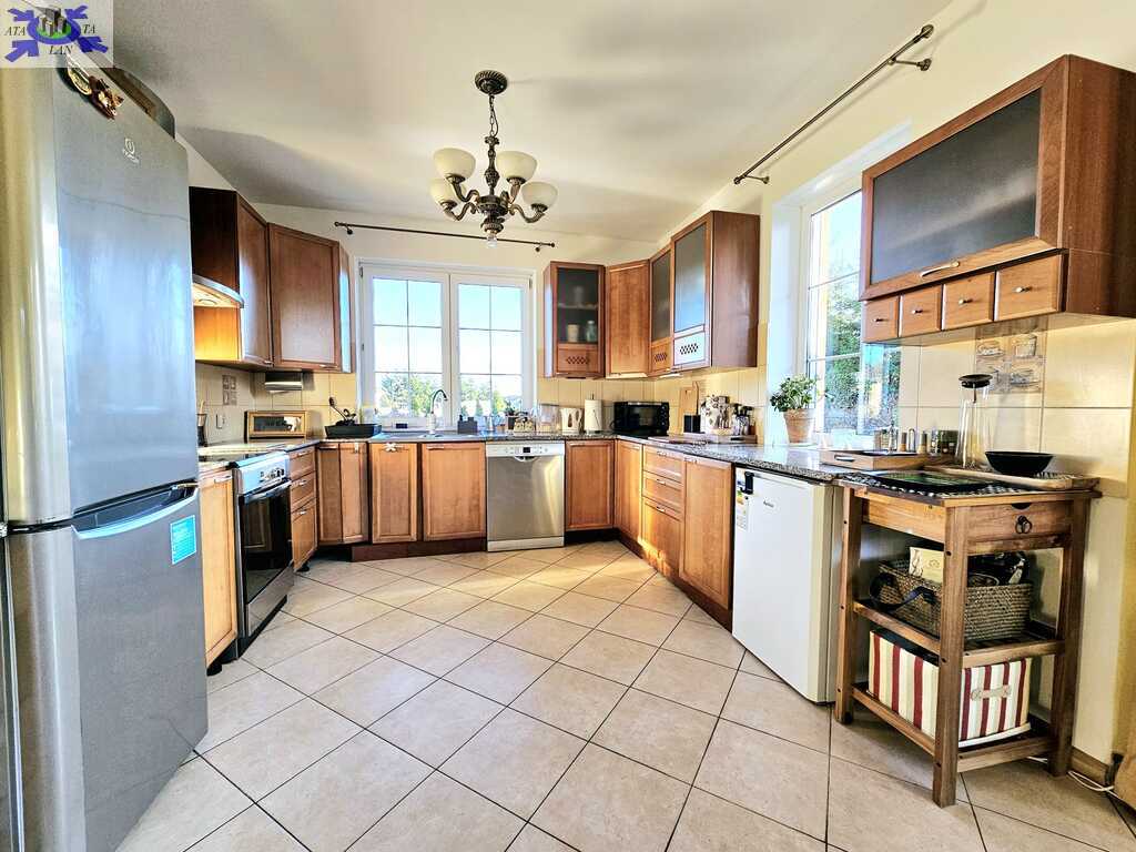 Oferujemy do sprzedaży dom wolnostojący z garażem, usytuowany w malowniczym zakątku Dobrej, bezpośrednio przy ścianie lasu. Nieruchomość położona jest na bardzo dużej działce, o łącznym metrażu około 4300 m2. Dom został wybudowany w 2008 roku z projektu ,,Dom pod Jarząbem (2G)". Powierzchnia użytkowa nieruchomości wynosi 148,9 m2, a całkowita 182,4 m2. Na parterze domu, znajdziemy otwartą kuchnię połączoną z salonem, z którego wychodzi się na duży, zagospodarowany taras i dalej na ogród, 3 sypialnię, łazienkę z WC, pomieszczenie gospodarcze z kolejnym WC oraz korytarz. Poddasze użytkowe aktualnie zamknięte i nieużytkowane (z możliwością zaaranżowania i zamieszkania). Ogrzewanie i ciepła woda zasilane z pieca gazowego. Dodatkowo, możliwość ogrzewania elektrycznego (zainstalowana podłogówka na całej powierzchni domu) oraz z kominka kaflowego. W cenie nieruchomości pozostają wszystkie zabudowy stałe wraz z umeblowaniem kuchennym i łazienkowym, reszta rzeczy do ustalenia. W bryle budynku, również garaż jednostanowiskowy oraz duży, zagospodarowany taras z pergolą, krzesłami i stołem. Największym atutem nieruchomości - lokalizacja - w malowniczym miejscu, pod samą ścianą lasu oraz bardzo duża działka (około 4300m2). Na jej terenie 2 duże szklarnie, krzewy z borówką amerykańską oraz oczko wodne z wieloma nasadzeniami. Podlewanie ogrodu sterowane elektronicznie. Cicha okolica, zapewniająca spokój i relaks jej mieszkańcom, a w sąsiedztwie jedynie zabudowa jednorodzinna i bliźniacza. Idealne miejsce dla osób ceniących ciszę, spokój oraz prywatność lub pod inwestycję, z uwagi na bardzo dużą działkę.