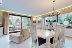 Całość ogrodzona, wybudowana z wysokiej jakości materiałów, w dobrym stanie technicznym, położona na zagospodarowanej działce o wielkości 938 m2. Ogród od strony południowej z domkiem letniskowym dla dzieci, grillem murowanym oraz miejscem do biesiadowania. Teren zadbany z dużą ilości nasadzeń. Wszystko urządzone z klasą i z dbałością o każdy szczegół.