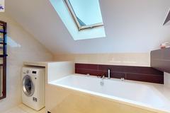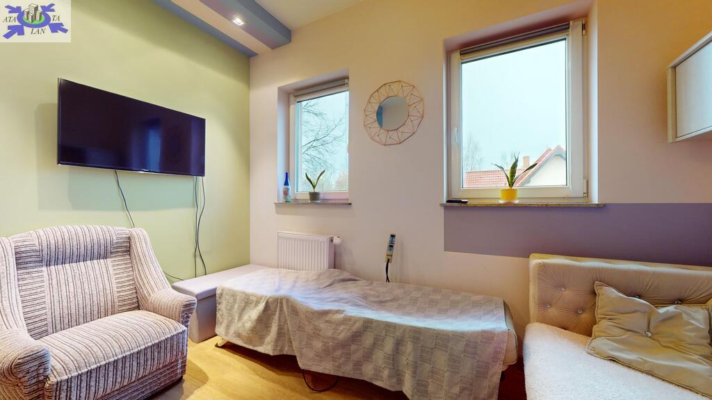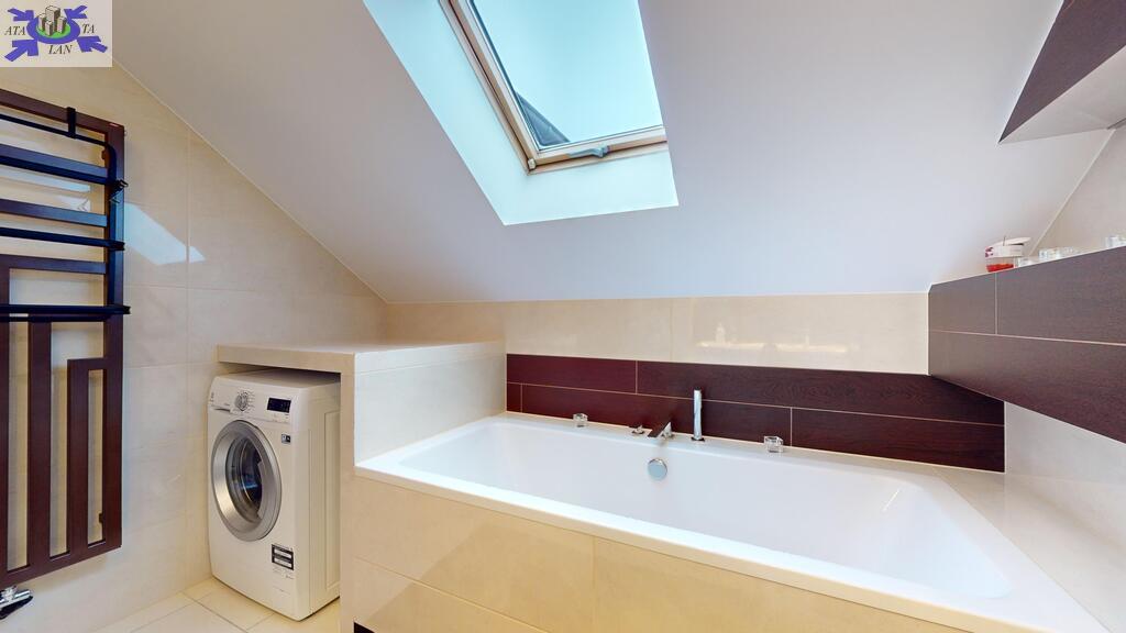 - Piętro 3 sypialnie w tym jedna duża z garderobą, łazienka z pralką i wanną, nieduży balkon.