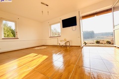 Dom cudownie posadowiony na niewielkim wzgórzu z widokiem na pola i lasy.