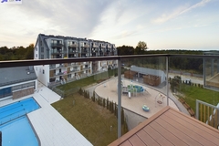 -Balkon tarasowy typu loggia Imponujący, duży taras z widokiem na morze, basen oraz plac zabaw - idealne miejsce na poranną kawę lub wieczorne chwile relaksu.