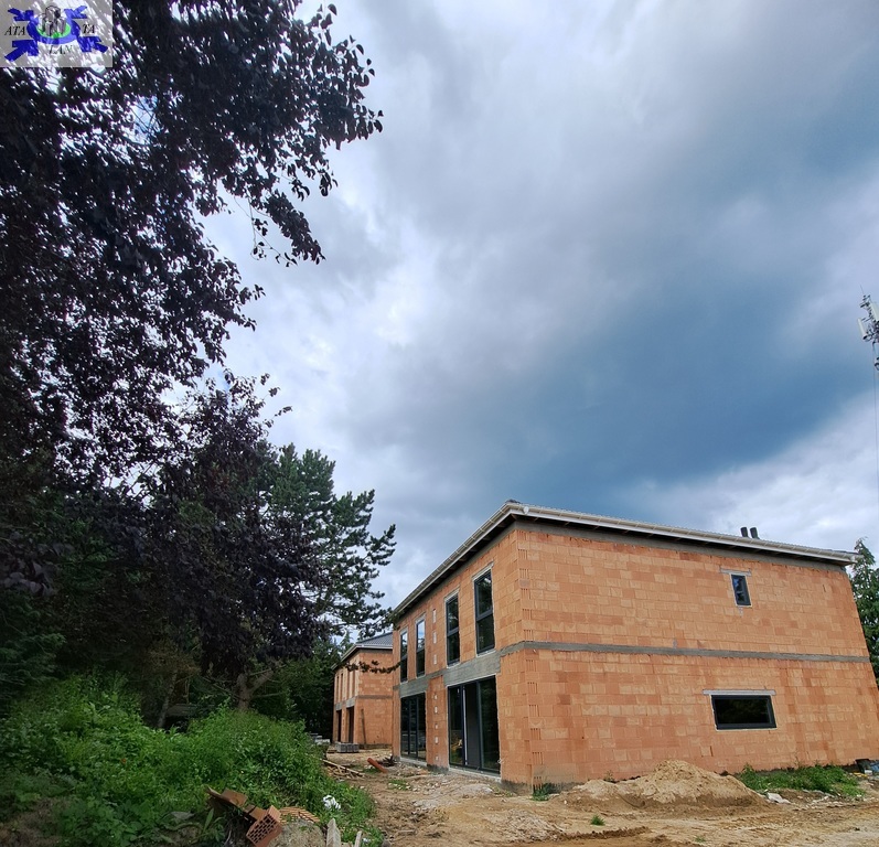 Domy budowane są z bloczków silikatowych ocieplonych styropianem 15 cm ,dach pokryty dachówką ceramiczną ocieplony pianą pur, okna PCV, ściany tynki gipsowe. CO i CW własne gazowe w całości ogrzewanie podłogowe.Nieruchomość rozłożona jest na dwóch kondygnacjach, na pierwszej znajduje się salon, kuchnia, łazienka oraz gabinet. Piętro to 3 sypialnie oraz łazienka. Do każdego lokalu przynależą po dwa miejsca postojowe oraz ogródki ok. 450 m2. Planowany termin zakończenia prac grudzień 2025 r.. Blisko szkoła, komunikacja miejska oraz sieci handlowe.