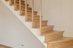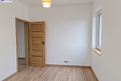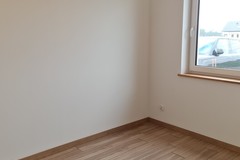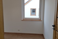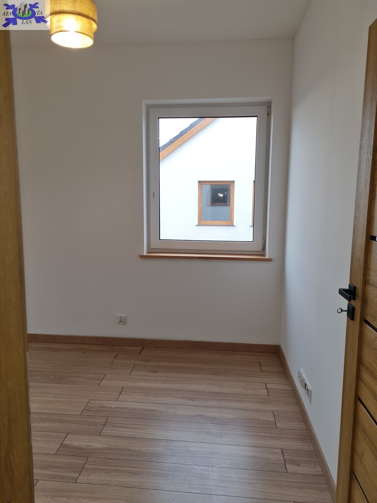 Dom składa się z salonu otwartego na kuchnię, sypialni, łazienki i hollu oraz na piętrze znajdują się z dwa rozkładowe sypialnie i łazienka.