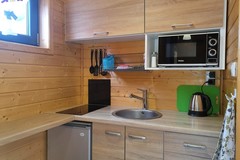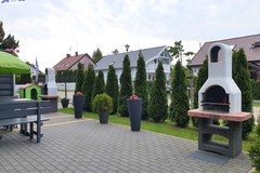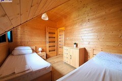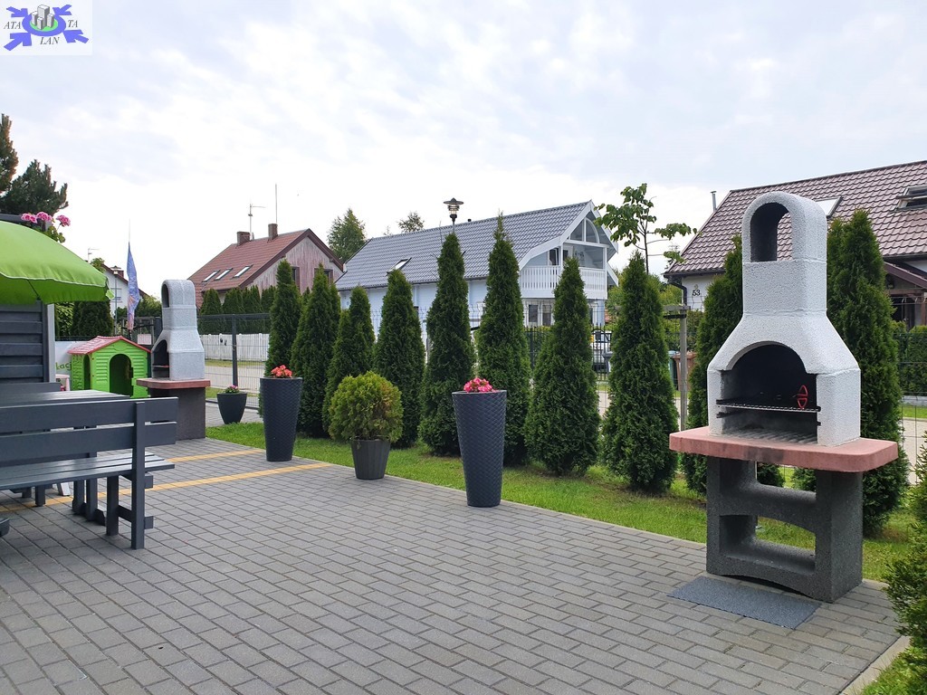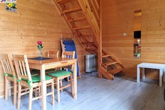 Budynek podzielony jest na 4 części, z których każda składa się z salonu z aneksem kuchennym i łazienką (parter) oraz dwóch sypialni (piętro). W każdym module może tu wygodnie wypoczywać 6 osób, a do ich wyłącznej dyspozycji na zewnątrz znajduje się stół piknikowy oraz grill betonowy. Dodatkowo na terenie posesji znajdziemy kącik zabaw dla dzieci oraz rowery.