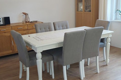 Dom położony przy jednej ze spokojniejszych ulic w Świnoujściu przy ul Grottgera. Bliźniak z cegły w dobrym stanie technicznym. działka ma kształt nieregularny, ogrodzona z przesuwną bramą. Na działce stoi garaż jednostanowiskowy. Na parterze jest przestronny przedpokój, piękny salon z kominkiem i z wyjściem na duży taras. Salon jadalnia i kuchnia tworzą jedną całość, tylko umeblowanie określa funkcję tych pomieszczeń. Na tym poziomie jest jeszcze sypialnia i dość duża łazienka. Piękne drewniane schody prowadzą na I piętro, gdzie są 3 sypialnie, niewielka kuchnia, łazienka i dodatkowe WC. Jest jeszcze poddasze, gdzie może być dodatkowy pokój. Pod całym budynkiem są duże, suche piwnice ( 4) z wyjściem do ogrodu. Ogrzewanie i ciepła woda z piecyka gazowego, urokliwy kominek daje ciepło w salonie i jadalni. Właściciele wymienili instalacje wodne i elektryczne. Niskie koszty utrzymania. Okolica spokojna. Oferta na wyłączność. Zapraszam