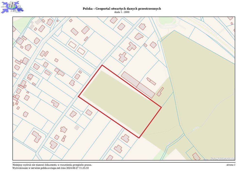 Działka leży bezpośrednio przy drodze asfaltowej, nie jest ogrodzona.