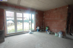 Salon z wyjściem na ogród od strony pd - zach. W salonie przygotowane podłączenie do kominka.