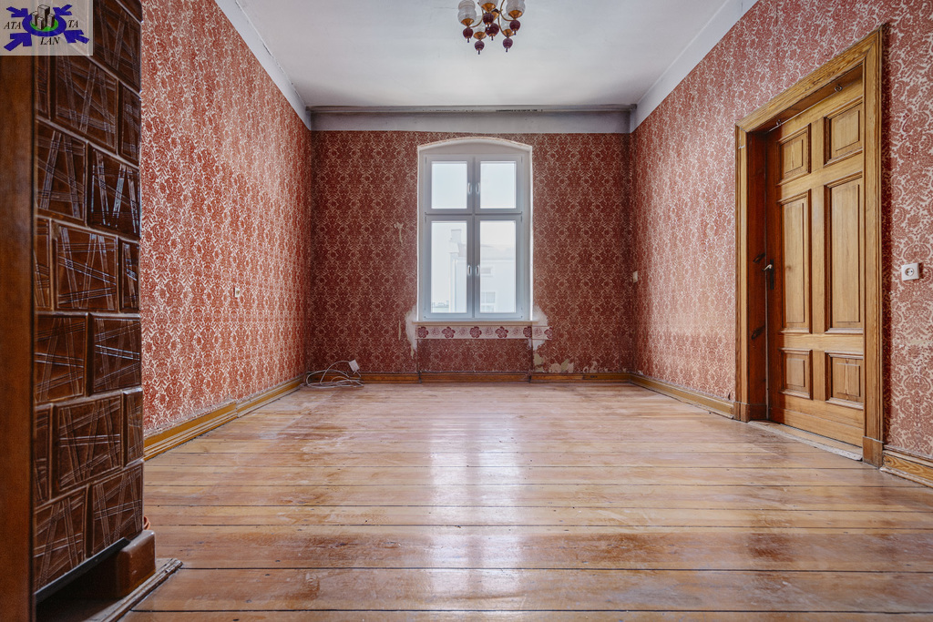 Tę wyjątkową, wysoką na 3,5 m przestrzeń docenią osoby, które dzięki uratowaniu tego, co wartościowe, pragną zachować autentyczność wnętrza i stworzyć bazę do eksponowania drewnianej podłogi oraz stolarki drzwiowej, która zachowała się w dobrym stanie.