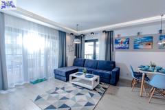 Apartament jest nowocześnie wykończony, z przestronną łazienką oraz kompletnie wyposażonym i umeblowanym aneksem kuchennym .