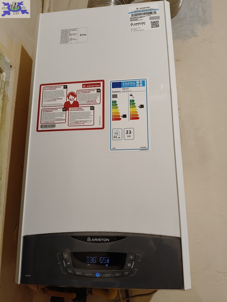 Ogrzewanie i ciepła woda z nowego pieca gazowego dwuobiegowego marki "Ariston".