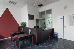 Na podłodze terakota, ściany malowane, sufity podwieszane z zamontowanym oświetleniem rastrowym. W lokalu rozprowadzono instalację klimatyzacji (nie ma tylko jednostki centralnej), instalację alarmową (wraz z kamerami monitoringu) oraz sieć komputerową.
