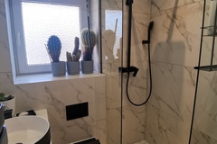 łazienka z oknem, o pow. ok. 3,5 m2, z kabiną prysznicową, umywalką i wc (remont 6 lat temu),