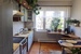 kuchnia z oknem, z jadalnią o pow. ok. 12 m2, bardzo jasna, z meblami starszego typu, na podłodze deski, ściany gładzone malowane (od strony ulicy - wschód),