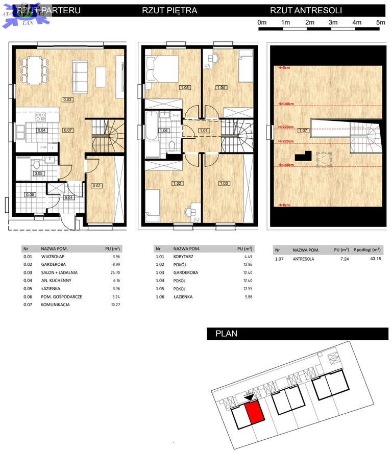 Antresola o pow. użytkowej 7,24m2 a powierzchnia podłogi wynosi 43m2 - idealna na biuro / magazyn / pokój rodziców.