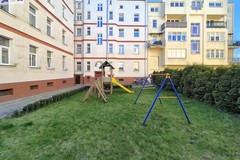 * zamknięte podwórko z placem zabaw, stojakiem na rowery i miejscem do grillowania dla mieszkańców