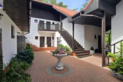 Pensjonat to kompleks 3 połączonych budynków o powierzchni użytkowej ok. 440 m2 z wewnętrznym patio oraz ogródkiem z miejscem do grillowania, placem zabaw i wypożyczalnią rowerów.