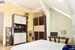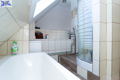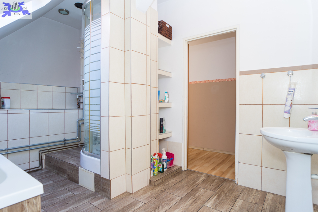 W łazience znajduje się wanna oraz kabina prysznicowa, w salonie klimatyzator podłączony do przewodu kominowego.