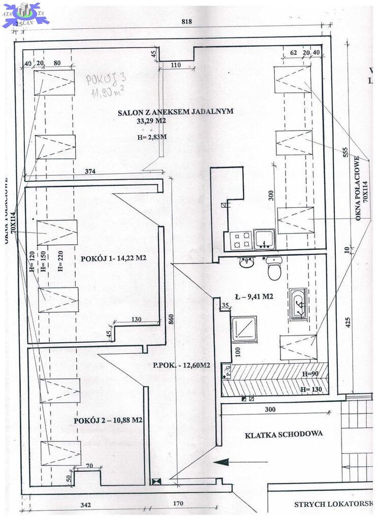 Prezentujemy państwu na sprzedaż mieszkanie 4 pokojowe na poddaszu w kamienicy, o pow. całkowitej około 100m2 (użytkowa 80 m2) , dzielnica Niebuszewo- blisko Jasnych Błoni - w którego skład wchodzą